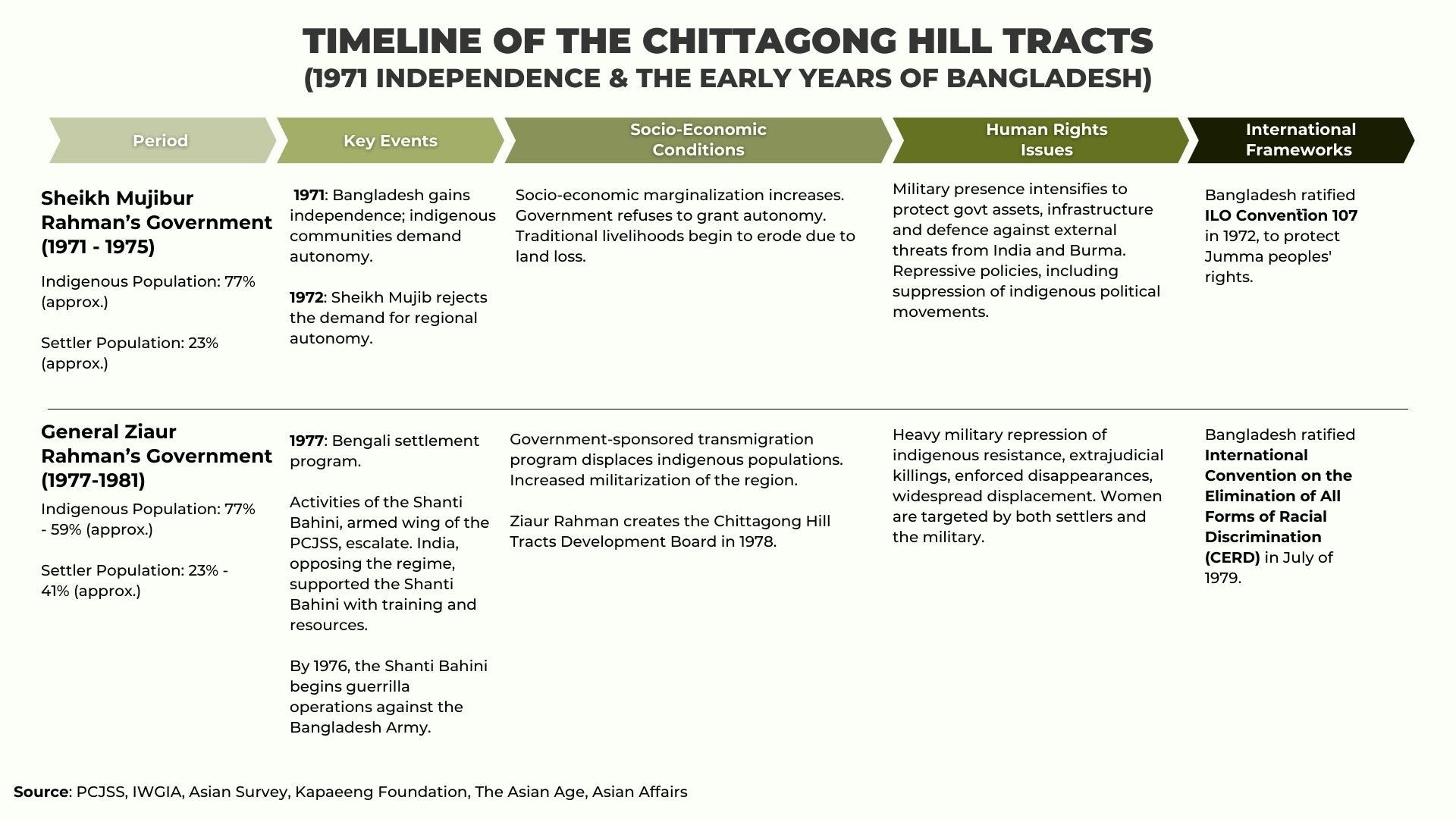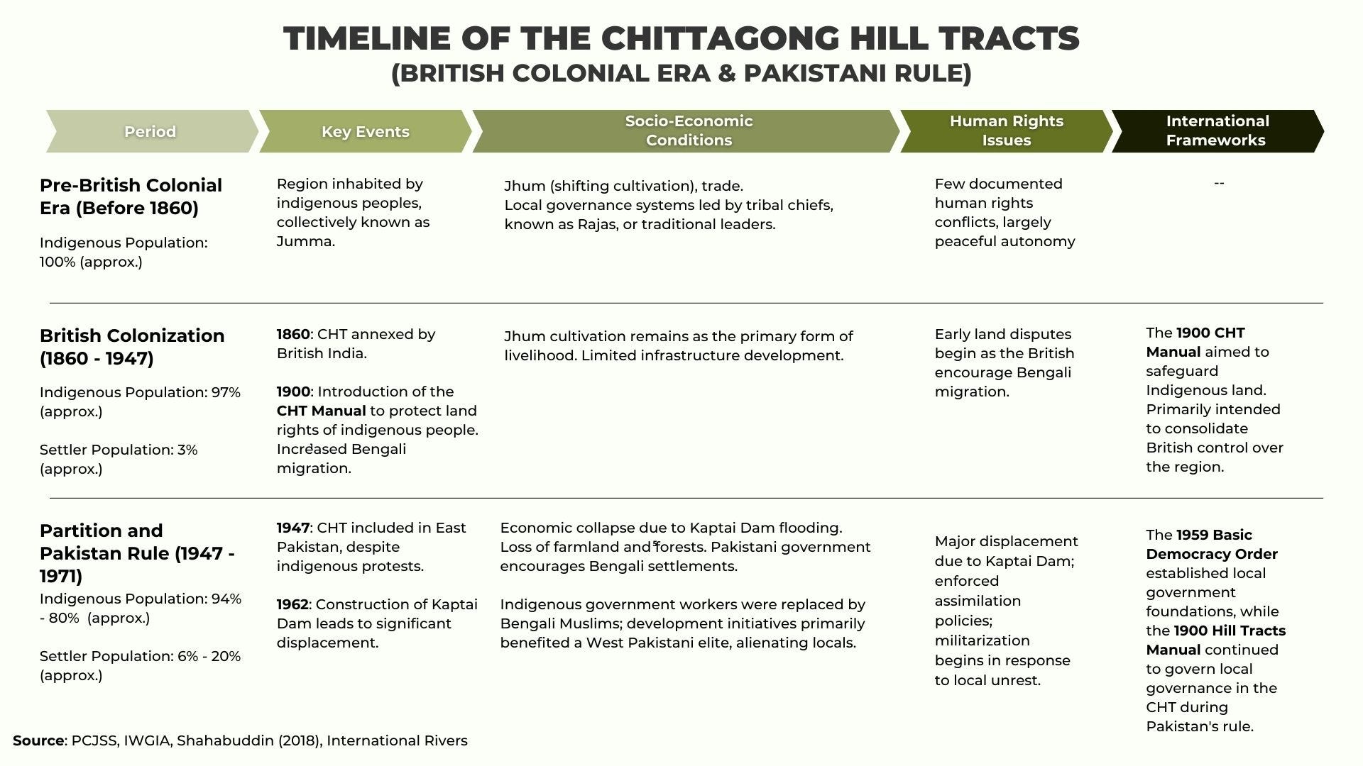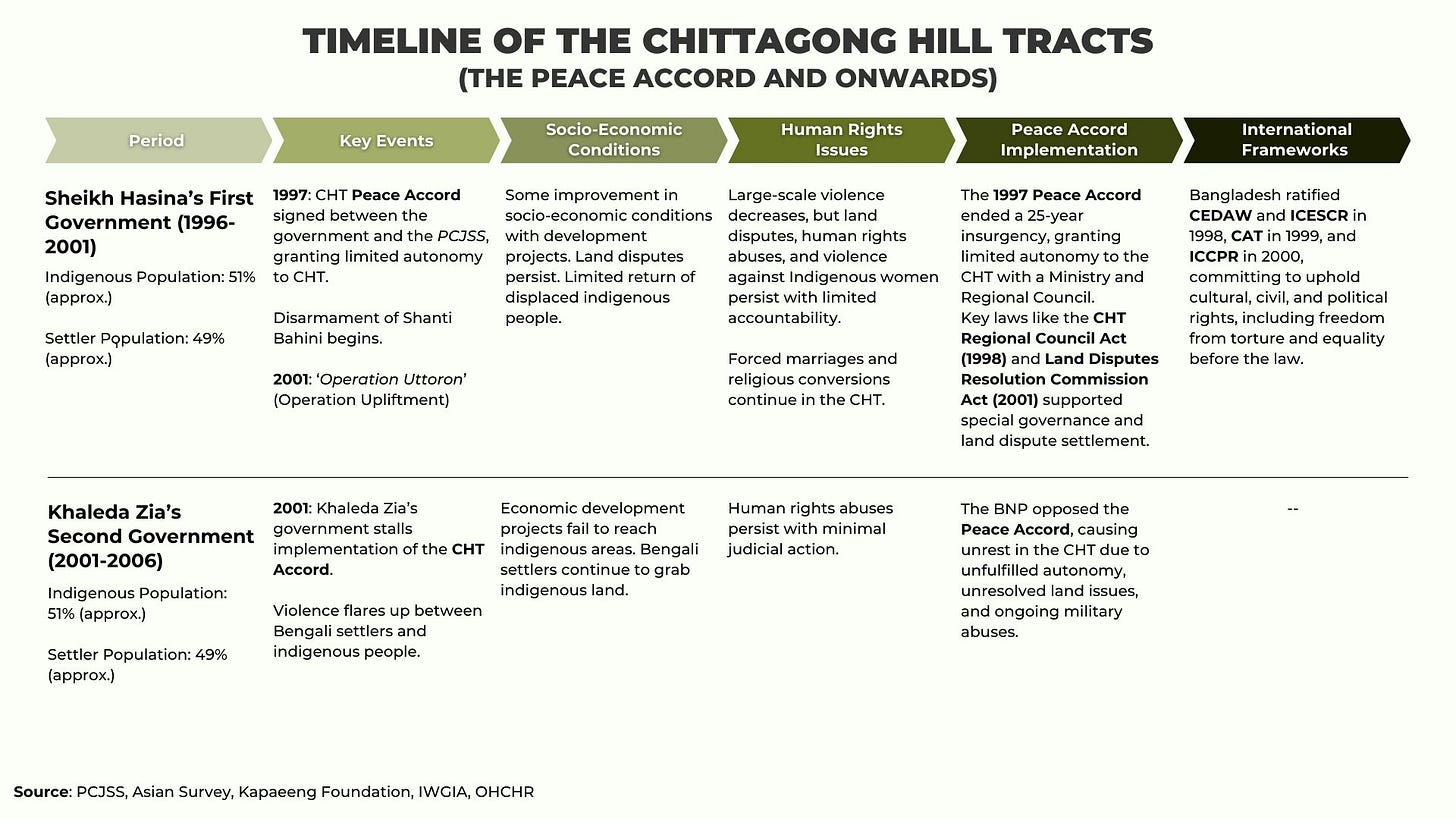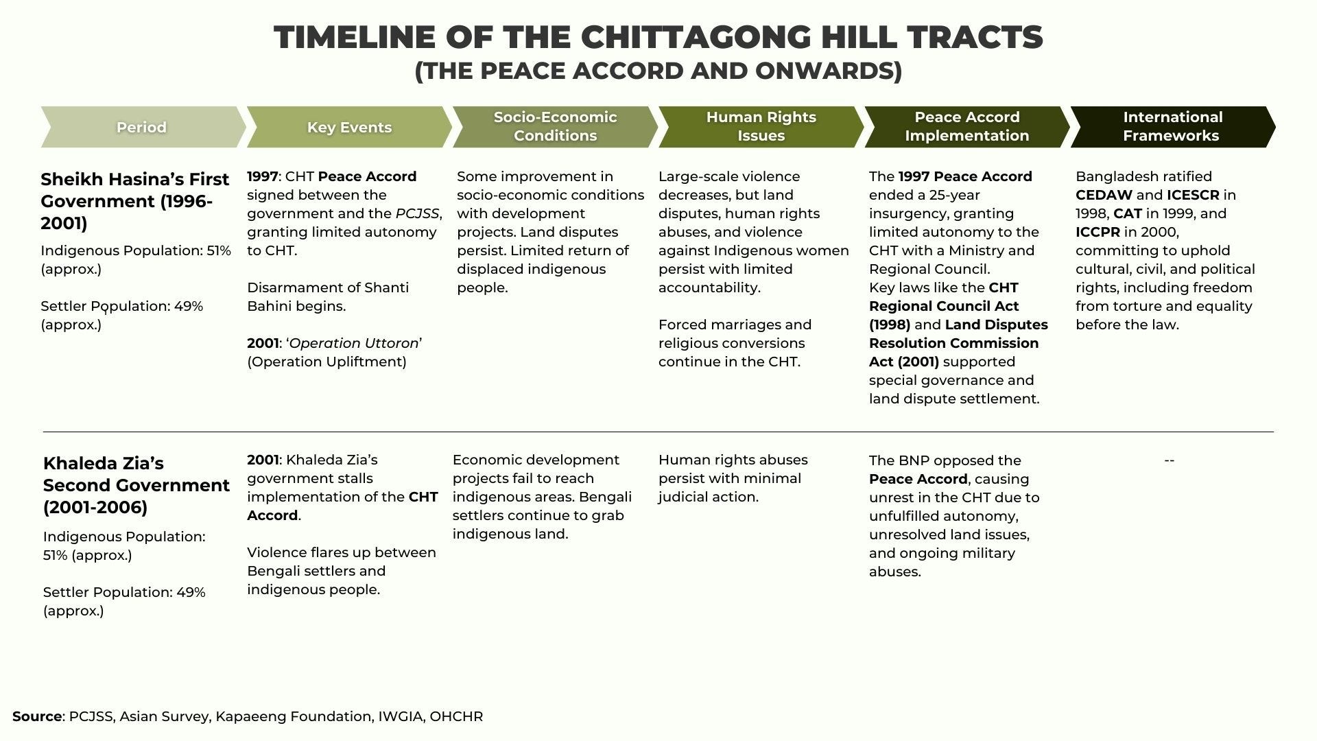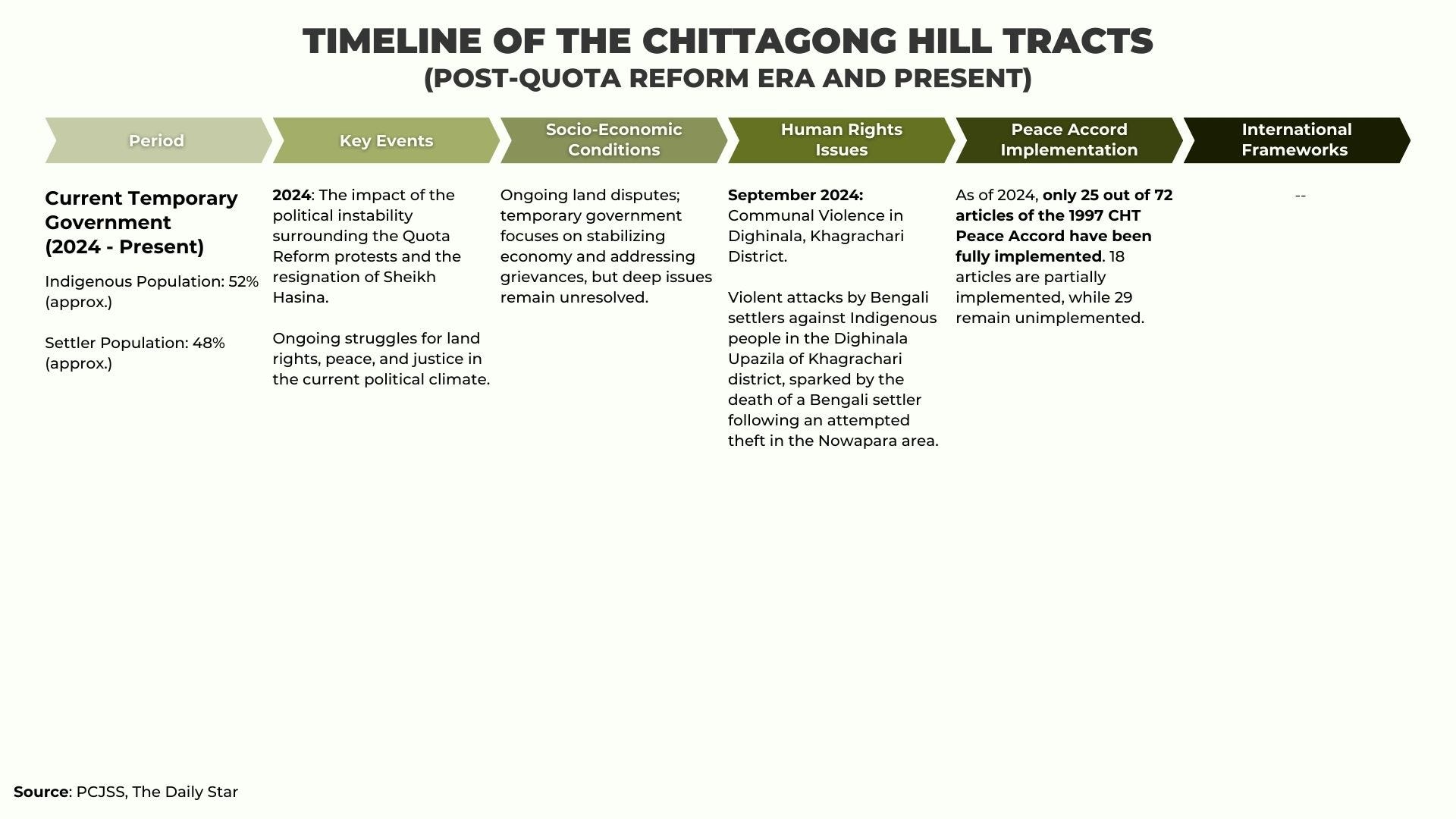 Takeaway Five: The timeline reflects a pattern of violence and rights violations against the Jumma people, including land displacement and socio-economic challenges, despite the existence of the Peace Accord and international frameworks. These conditions highlight the need for sustained attention to the structural issues that have persisted for more than a century.